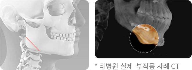 사각턱 수술 후에는 입술 옆 부분에서 피부처짐이 발생할 수 있습니다. 피부탄력이 좋고 얼굴의 살이 많지 않은 경우는 수술 후 피부 처짐이 거의 발생하지 않으나 피부 탄력이 좋지 않고 이미 처짐이 어느 정도 있는 경우에는 수술 후 처짐이 심해질 수 있기 때문에 사각턱 수술과 SMAS 리프팅 수술을 동시에 시행하는 당기는 윤곽 수술을 추천 드립니다.