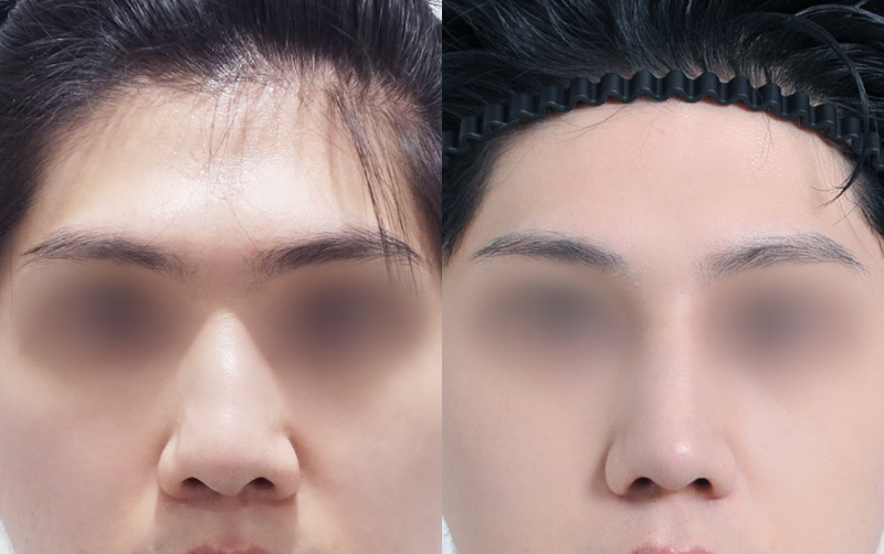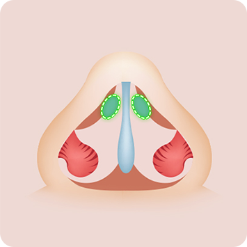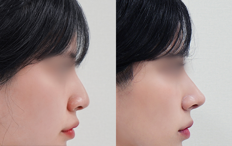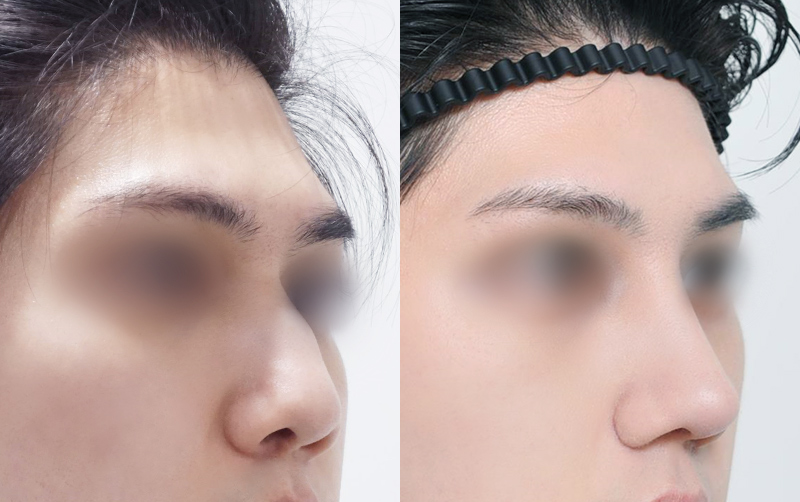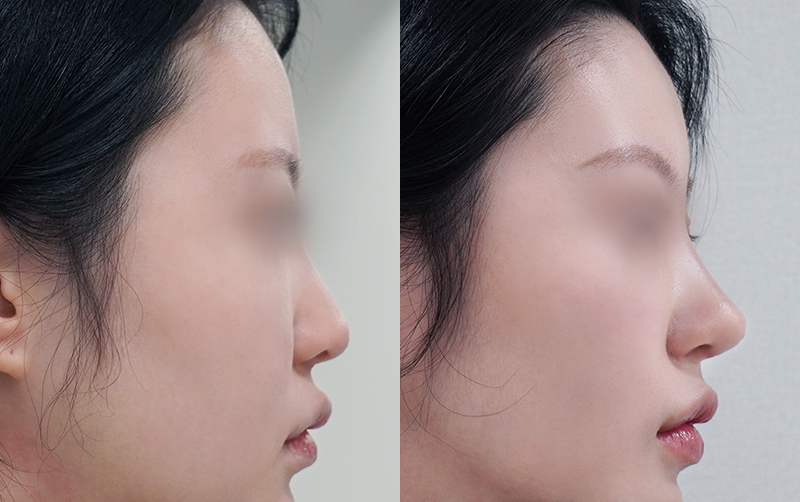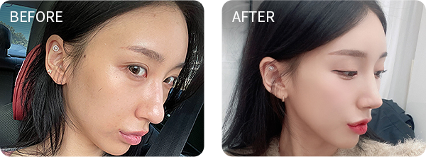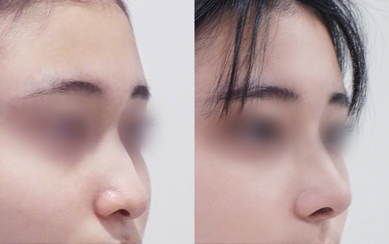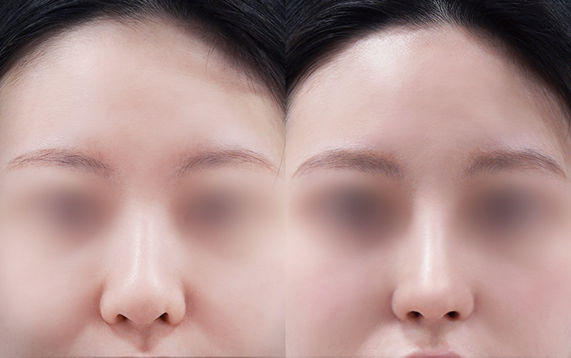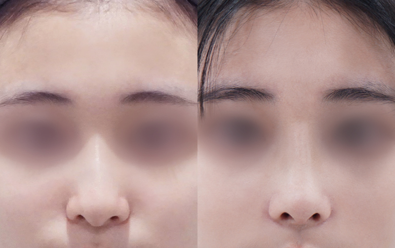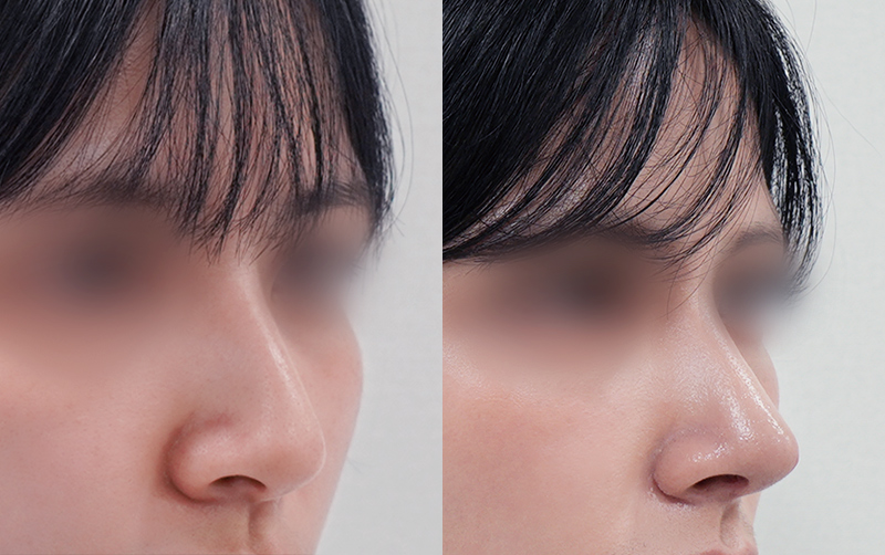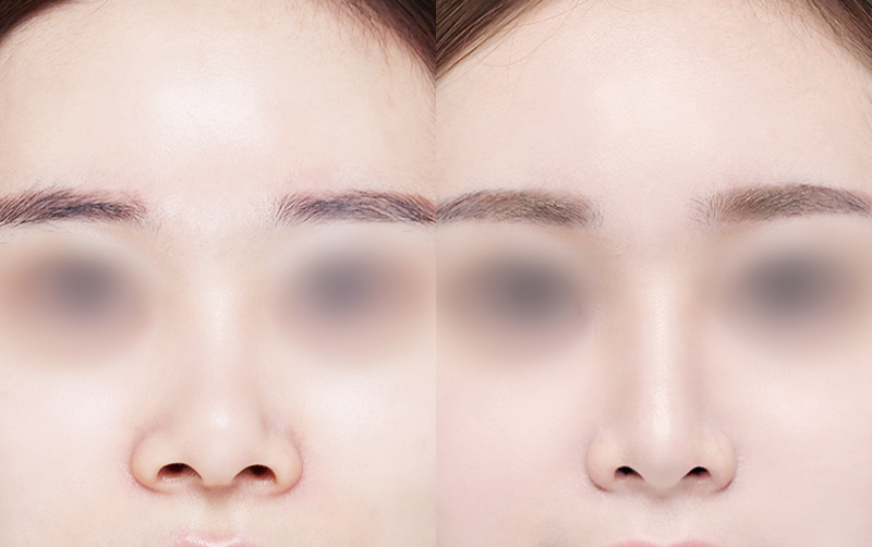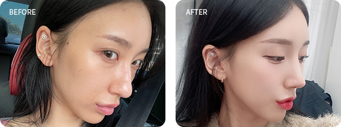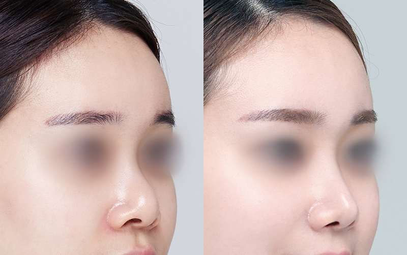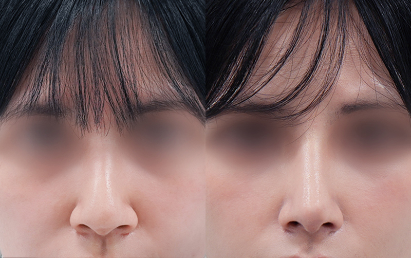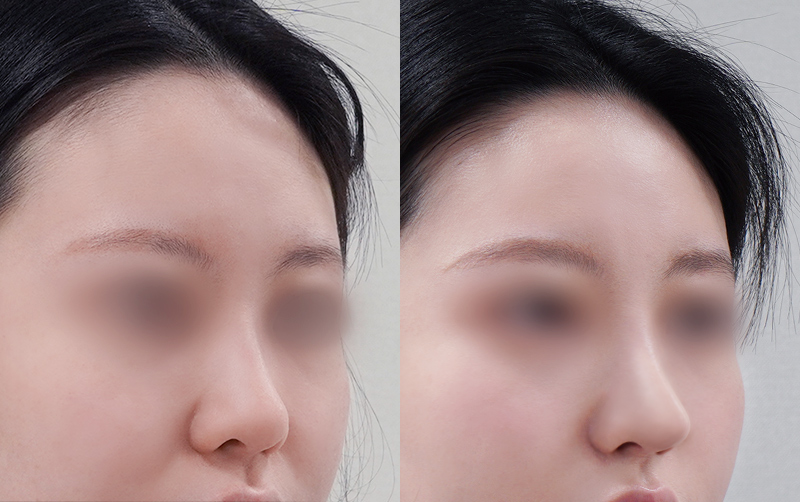 미간 사이 콧대와 코끝 부위는 부기가 상대적으로 천천히 빠지며 최종적인 모양은 6개월이 경과한 후에 안정됩니다.