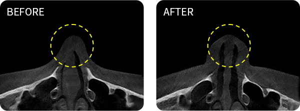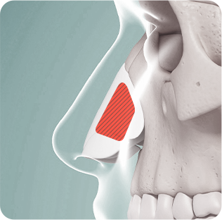 휜 코와 약해지고 만곡된 비중격을 바로 잡아줌과 동시에 튼튼하게 강화하여 코막힘 재발과 코 모양 변형을 예방