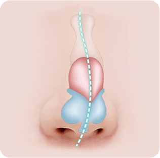 코의 외관이 심하게 휘어졌을 경우 코의 내부 구조 역시 한쪽으로 치우치게 되면서 비중격 만곡증 등의 증상을 보이게 되는데