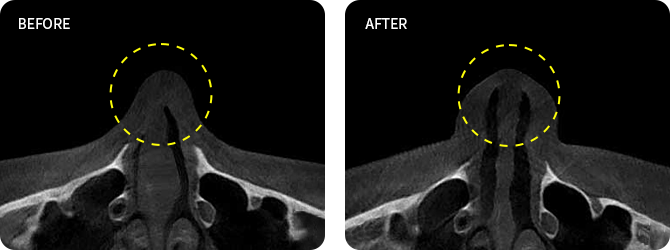 다양한 코골이의 원인 중 하나인 비중격 만곡증은 코의 비중격이 휘어져 있는 상태로 휜 코 교정 시 개선이 가능합니다.