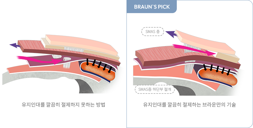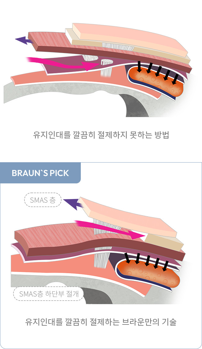 안면신경 손상 없이 SMAS 층부터 확실하고, 강력한 리프팅