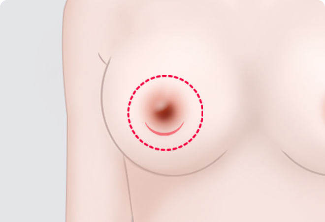 피부색이 짙은 유륜 아래쪽 라인 절개