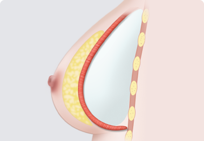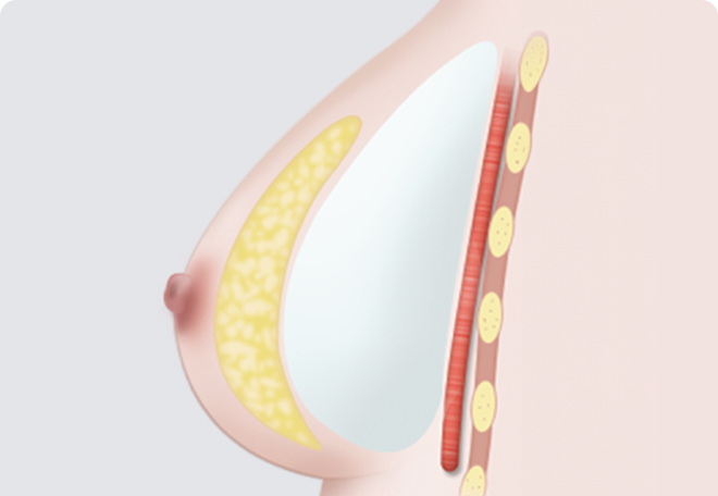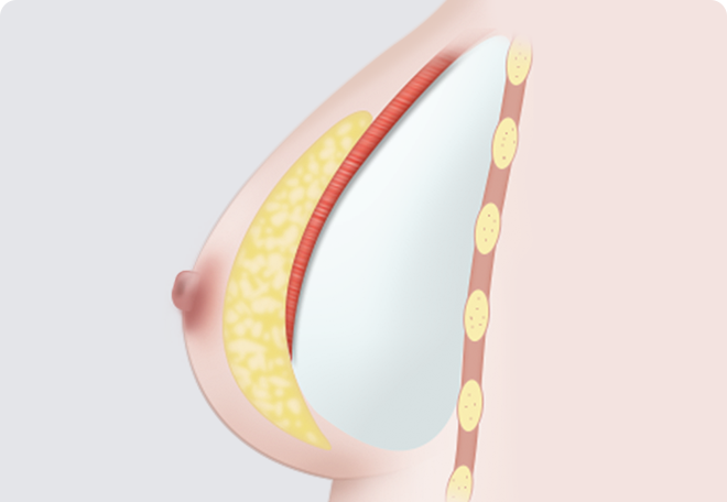 가슴 근육 아래와 유선조직 아래에 보형물을 삽입하는 방법으로 자연스러운 가슴 모양을 만들 수 있습니다. 높은 기술이 요구되는 방법으로 풍부한 경험을 가진 숙련된 전문의에게 받아야 합니다.
