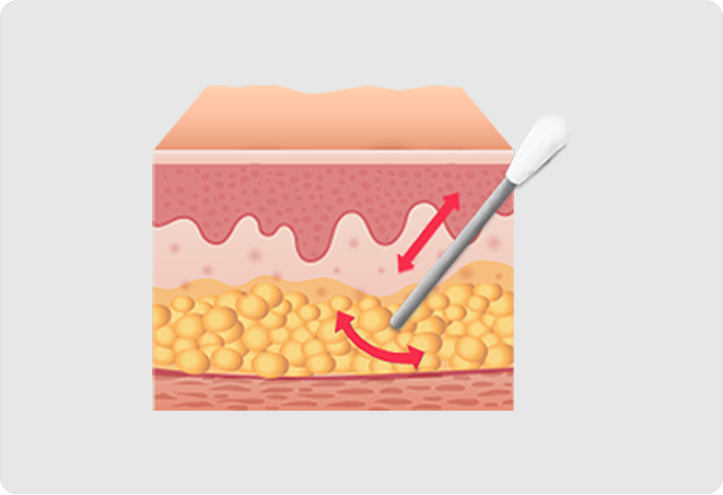 미세한 절개를 한 후 케뉼라 관을 삽입해 피부 밑 지방을 밖으로 흡입하는 시술입니다.